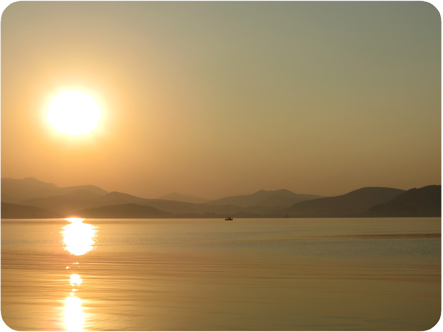 From the moment he first laid eyes on the castle looming over the town of Nafplio, Niko had been begging and pleading to go to Palamidi. And when he learned that you could either drive up or walk up (a steep staircase with 999 stairs), he HAD to walk. Nobody wanted to do it with him, haha! Gus and I walked DOWN the steps back in 2006, and I could barely move my legs for days. It was so painful! I figured going up wouldn't be quite so hard on my joints, though, and volunteered to climb up with him. We all got up super early to beat the heat. We were actually up early enough for Niko to cross another thing off of his "must do" list: watch the sun rise over the ocean!